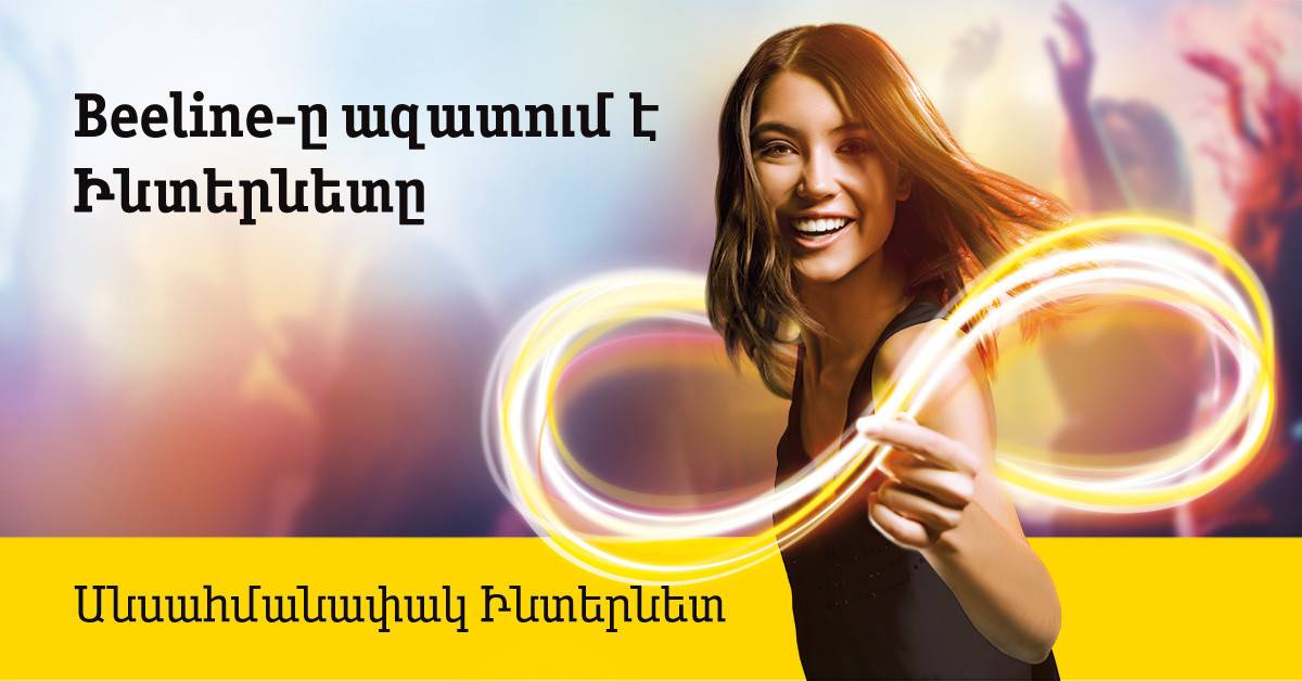 6 сентября 2019, Ереван. Beeline объявляет о запуске услуги безлимитного мобильного интернета. За абонентскую плату 5900 драмов абоненты всех предоплатных тарифных планов мобильной связи (за исключением тарифных планов мобильного интернета), смогут подключить услугу «Безлимитный интернет» и пользоваться мобильным интернетом без каких-либо ограничений.