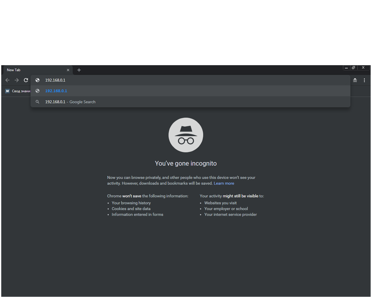 In the address bar, enter 192.168.0.1