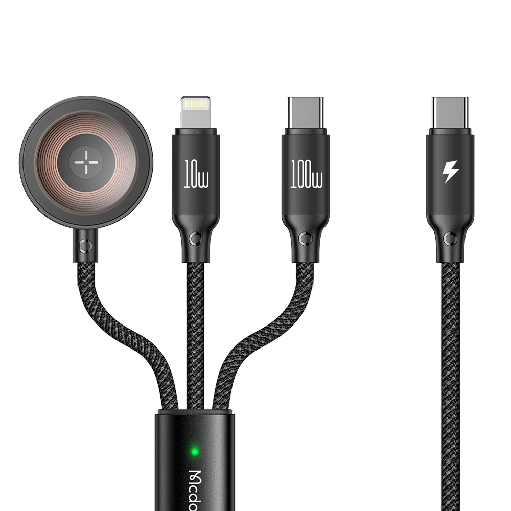 Кабель 3 in1 100W USB-C to Type-C and Lightning+ Wireless Charger for Apple Watch Cable 1.2m