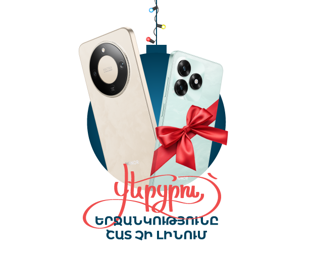 Ամանորին ընդառաջ ձեռք բեր Honor X9d սմարթֆոնն` ամսական սկսած 2250 դրամից և ստացի՛ր ևս մեկ սմարթֆոն՝ Honor X5c։ Կստանաս նաև TeamTok փաթեթ`1 ամսով և 100 ԳԲ ինտերնետ` 6 ամսվա համար։ Առաջարկը գործում է 08.12.2025 - 31.01.26 ներառյալ։ Ամսավճարին ավելանում է բանկի վճարը։