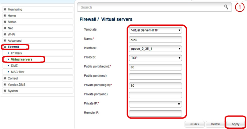 «Template» - выберите Virtual Server HTTP