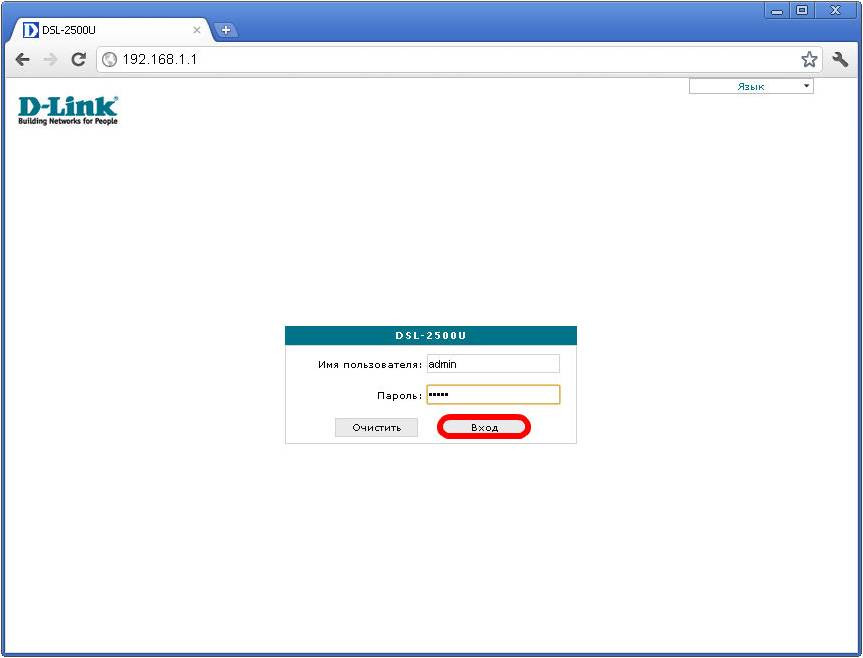 Для конфигурации модема D-Link DSL 2500U: