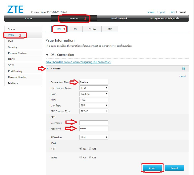 Роутер ZTE H168N имеет возможность работать по двум технологиям (ADSL2+/VDSL2+).